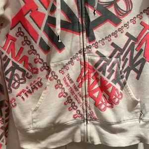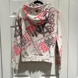 TNA white with grey and pink TN printed all over hoodie in size S.