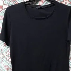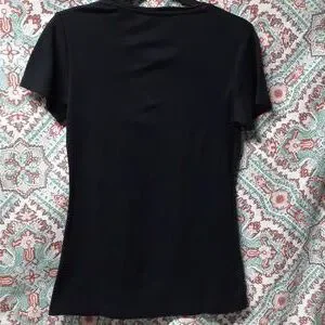 Preowned, great condition. Freshly washed. Black in color. 95% cotton and 5% spandex. H&M quality black tee. Machine wash hot, line dry. Medium iron on reverse side. Bleach when needed.
