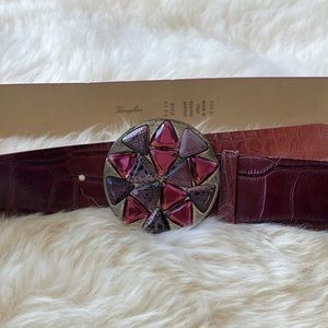Color is a deep maroon with silver tone buckle and maroon & purple stones