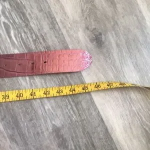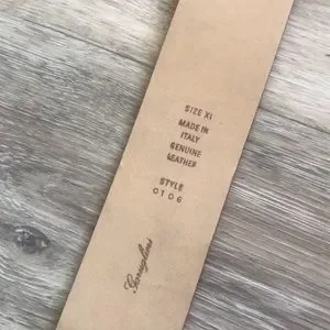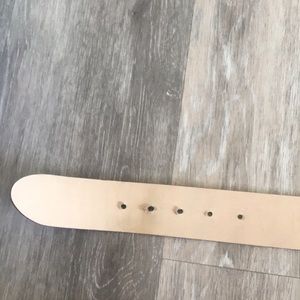 Has a few minor nicks on leather and scratches/ tarnish on metal buckle
