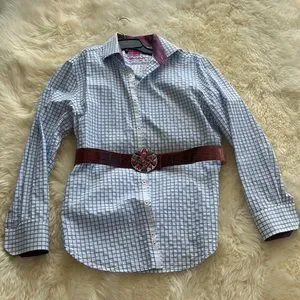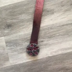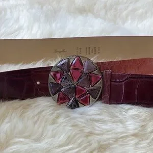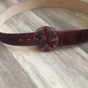 Garuglier’s leather belt XL maroon purple stones silver buckle made in …
