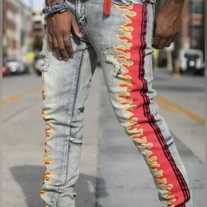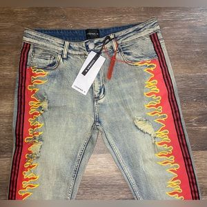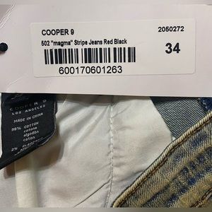NWT Cooper 9 Magma Stripe Jeans Red Black Size 34X32