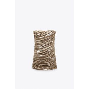 ZARA GOLD METALLIC STRAPLESS MINI DRESS WITH STRAIGHT METALLIC