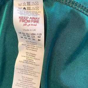 Size 20. Never worn, with tag. Boohoo “Disco Slinky Belted Wrap Dress. Emerald green. Long sleeve with elastic, wrapped bodice. Built in belt which can be tied in front or back. (See photos). Polyester/ Elastane, machine washable.