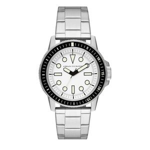 🔥 ARMANI EXCHANGE Men LEONARDO Round White Dial Stainless Steel Bracelet🔥🔥