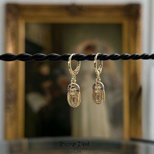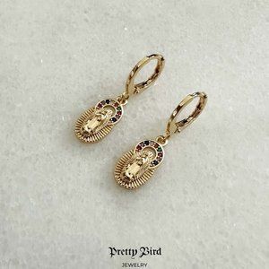 18K Yellow Gold Plated Multicolor Madonna Dangle Earrings