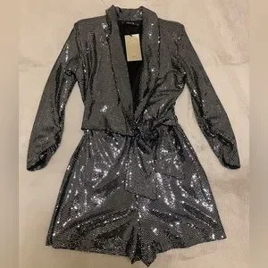 Black & Silver Zara shorts romper with tags. Item was not worn.
