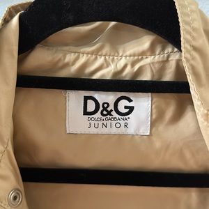 Dolce Gabbana Junior jacket for boys in a size xs( please check their sizing as I’m only guessing the age, my son wore this at age 10) nylon, front zipper with D&G buttons. Excellent condition. Smoke-free, pet-free home.
