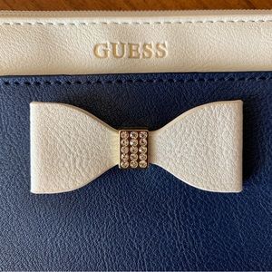 Super cute faux leather navy blue and white Guess wristlet. Tap on the photo to see the entire picture.