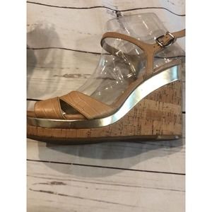 Antonio Melani Beige Cork Heels Platforms Wedge 9.5 tan Leather