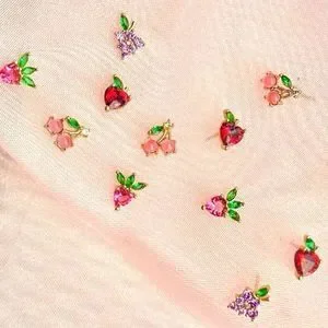 ADORABLE 18K Gold Plated Diamond Cut Crystal Fruit Micro Stud Earringsā¦