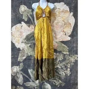 NEW Anthropologie Silk Colorblocked Maxi Dress Size 6