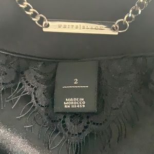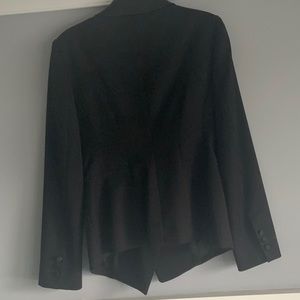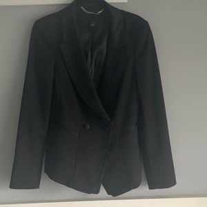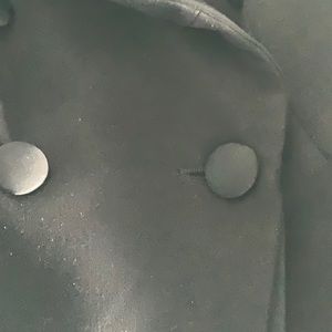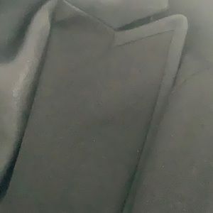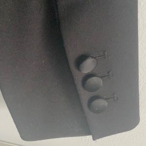 Satin colllar trim, 2 slit pockets, dbl breasted, 6buttons (I closes) front longer, front slightly longer, lined inside. Great condition worn 1x