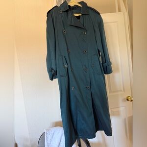Teal trench coat, fully lined with removable liner, liner is 100% wool.