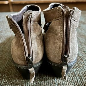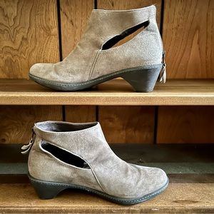 Dansko Beige Suede Side Cut Outs Bonita Back Zipper Ankle Booties, size 39 8.5 9