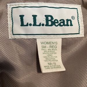 Vintage LLBean wool blend swing coat. Size small. Has an A-line shape. Oversized fit. Tan color. Button front with two pockets. Attached hood. Polyester lining. In excellent vintage condition. Tiny bald spot on the back and one pull in the lining. No smells.