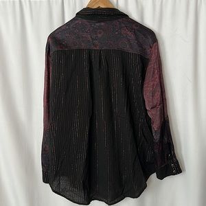 Beautiful Johnny Was Workshop Metallic Threading Floral Long Sleeve Shirt Top. Size L.