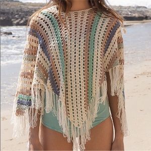 NWOT - POL CLOTHING - crochet style fringe sweater with hood - Size L