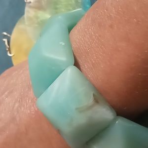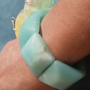 Shell earrings & chunky expandable bracelet. Teal blue & yellow