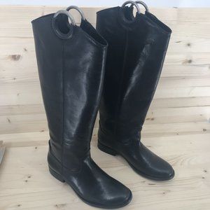 Frye Womens RARE HTF!! Tall Pull On Black Leather Boots Harness Size 6 B