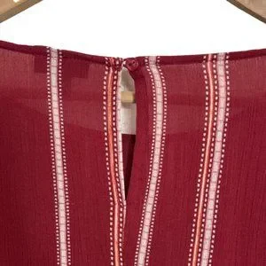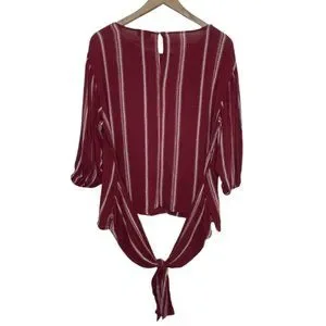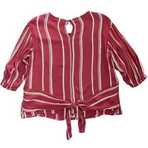 ANA | Red Striped 3/4 Elastic Sleeve Blouse with Waist Tie | Size M