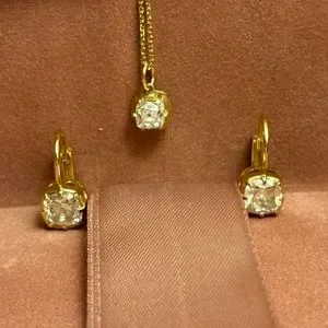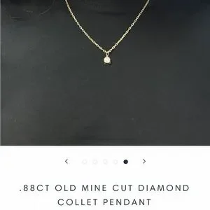 Antique collet diamond necklace in 14kt gold from Jewels by Grace. The necklace will come with an invoice/certificate from Grace. 0.88ct. Chain NOT included. Earrings NOT included.