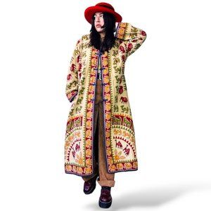 Sold-vintage boho batik long-line patchwork quilted coat