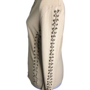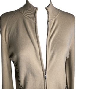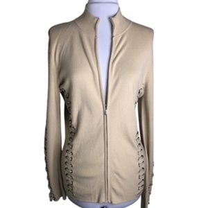 No Label Full Zip Faux Laced Sleeves and Side Front Mock Collar Sweater Size L