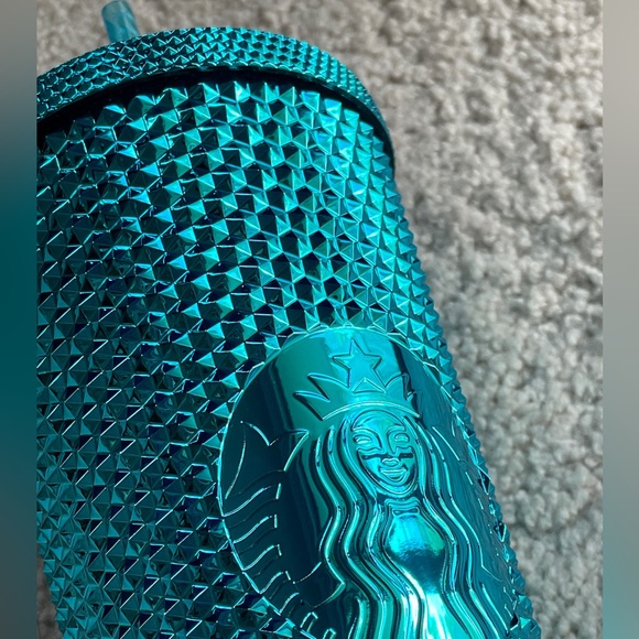 Starbucks, Metallic Turquoise Blue Tumbler, Venti, NEW, Studded, Chrome, Bling