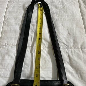 Compact design with tremendous access as the zippers go all the way around with with outside magnetic clasp compartments front and back as well as a zippered space on the exterior and multiple compartments inside including central zippered space and front interior zippered space, great organization- approximately 11” x 10” wide by 3” deep with about 14” from shoulder to purse, vguc- lovely!