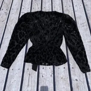 The perfect top for a polished date night look & upcoming parties. The black textured & shiny leopard design catches every eye, while the deep neckline promises a flattering fit.