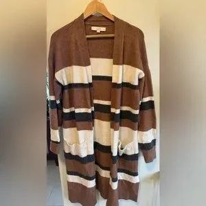 Boho Wool Long Open Cardigan Striped Cozy Sweater Size Medium