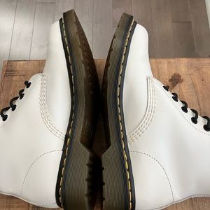 So cute! White leather Dr. Martens boots. Black laces. In excellent condition. Worn once. Very slight scratches that are hardly noticeable.