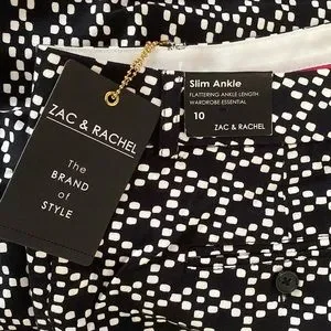 NWT Zac and Rachel Black and White Slim ankle pants with zipper fly, two hook closure, two back pockets with buttons and two faux front pockets.