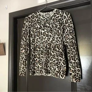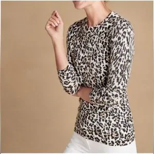 J. McLaughlin cheetah/leopard lightweight cashmere long sleeve crewneck sweater