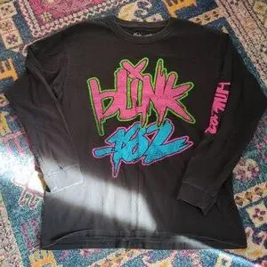 neon design BLINK-182 long sleeve black shirt. pink logo down left sleeve. plain right sleeve and plain back