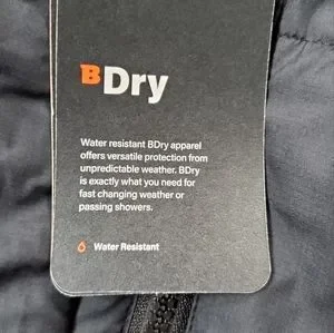 BWarm tech helps keeps you cozy in cold weather; BDry tech is water-resistant and breathable