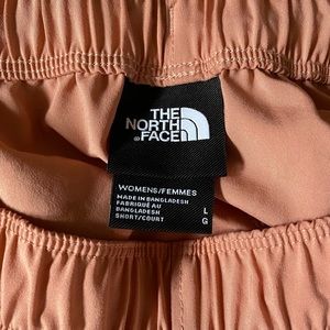 The North Face shorts, dark peach color. Size L and 6” inseam. There are no pockets.
