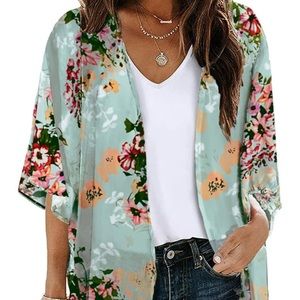 Floral Chiffon Kimono Cardigan Short Sleeve Blouse