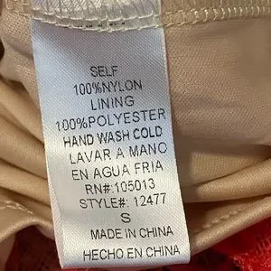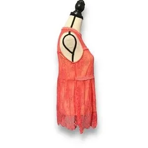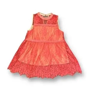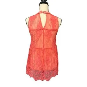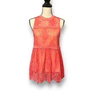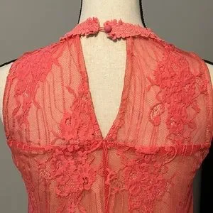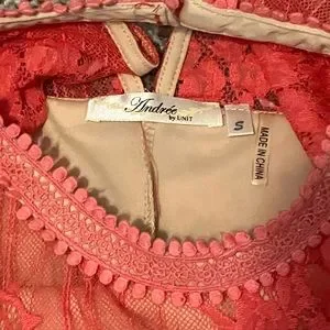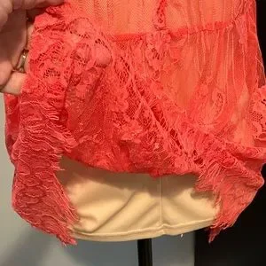 Nude colored lining wit coral colored lace material on top.