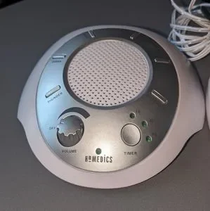 Makes 6 different sounds to lull you to sleep. Either plug it in or use batteries.