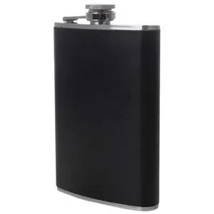 This Maxam® 8oz Stainless Steel Flask with Black Wrap provides sleek, sturdy containment and transportation for your spirit of choice. Features black faux-leather wrap on the outside, a polished finish, and screw-down cap. Measures 3-5/8" x 5-3/4" x 1".