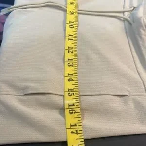 Wrinkle resistant, mesh fabric, pockets 2 on chest, 4 on pants 2 in front 2 in back, plenty of room for your small goodies like lipstick,ID, CC or keys, lightweight, 16 inches pit to pit, 32 inches all around, inseam 27 inches,Drawstring Waist 16 inches laying flat and 32 inches all around not cinched or tied, hips laying flat 17 1/2 inches, 35 inches all around hips,
