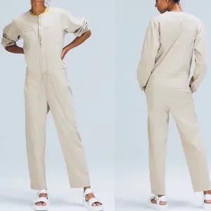 Lululemon Ventlight Zippered, Flight Suit,Tan, Khaki,cream, Drawstring,Onesie,Size 2
