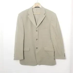 Vintage Classic Boulevard Club Professor Khaki Blazer Sport Coat Jacket 42 Regular Lined Wool Blend Flap Front Pockets