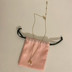 Used but still beautiful! Tiny bit tarnished on the clasp (pictured.) longer and great for layering. Comes with the jewelry bag!!
