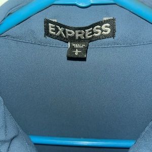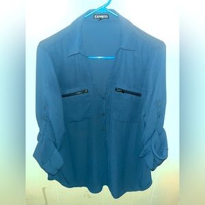 This royal blue express blouse is great for a job. Zip pockets on each side, V neck half button down and sleeves can be 3/4 or long sleeve sizeL