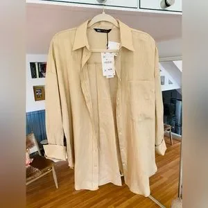 NWT! Zara Linen Shirt with Pocket | Size XS