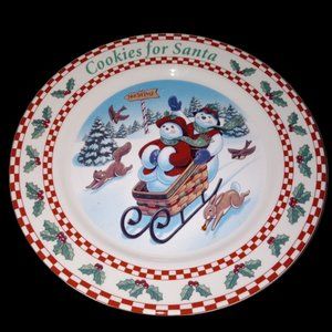 This Longaberger Company Christmas “Milk & Cookies for Santa” gift set includes 9” plate and 4-1/2” tall cup tumbler made from vitrified china which is safe for food and for using in the microwave, dishwasher, or freezer. Features the characters of Chilly and Sleigh Belle. Beautiful set that was made for Christmas 1998 that is still new, has never been used, and only removed from the box for the photos in this listing. Was received as a Christmas gift in 1999 and gift message is handwritten on top of box. For holiday decorating or collecting!