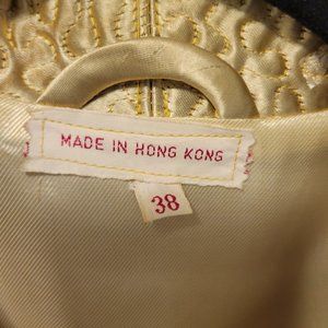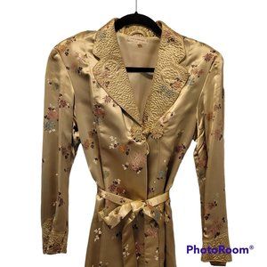 Vintage Chinese Womens Gold Silk Brocade Embroidered Long Coat Jacket Robe Small